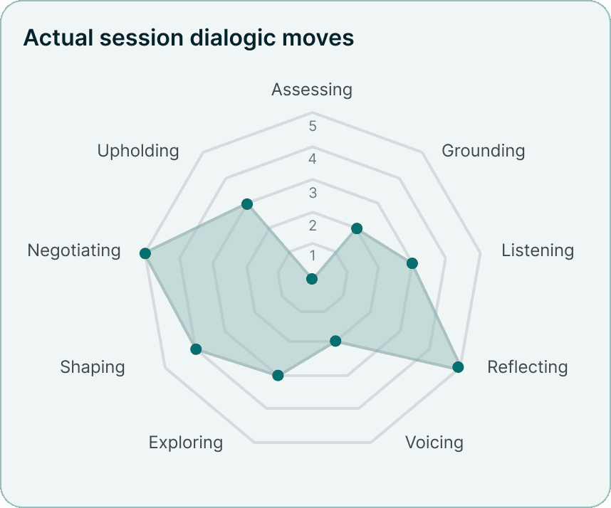 Yeltic Dialogue delivers technology enabled, experiential training designed to build measurable dialogic capability. Users engage in structured, scenario-based dialogue practice supported by AI-driven feedback and progressive development tracking.